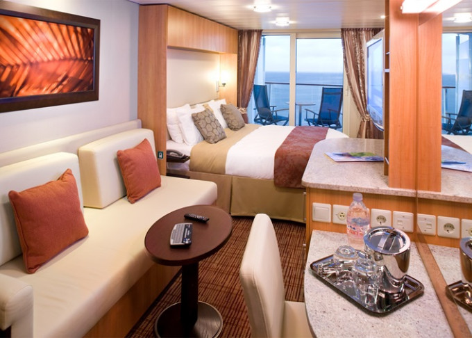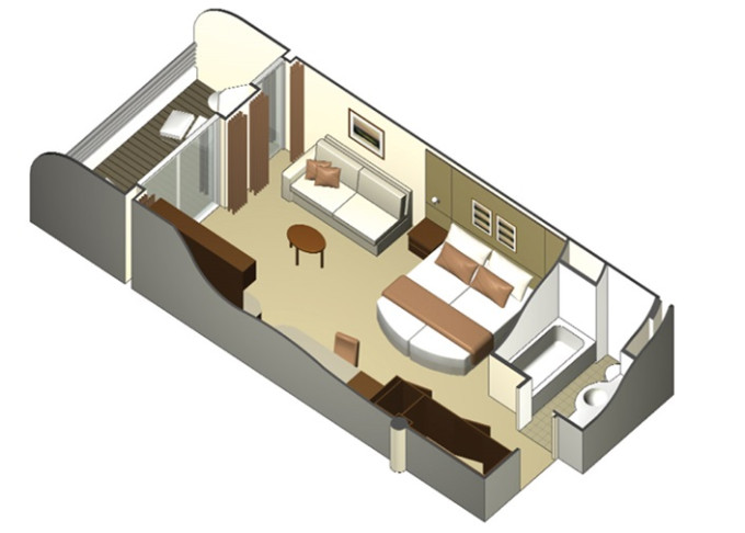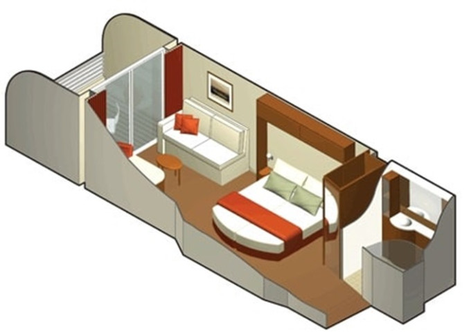 • Kajuty sú umiestnené v blízkosti lodného Spa. K ich vybaveniu patrí posilnený systém vzdušnej filtrácie, posteľ Queen-Size (v kategóriách Edge King-Size), veľké zasúvacie sklenené dvere, exkluzívne posteľné prádlo eXhale®, veľkorysé skladovacie priestory.