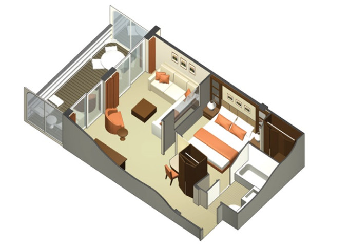 CS - Celebrity Suite 37 m² + balkón 10 m². 9,11. paluba. Max 4 osoby. Výhody Suite. 11 388 € 2 847 € za osobu