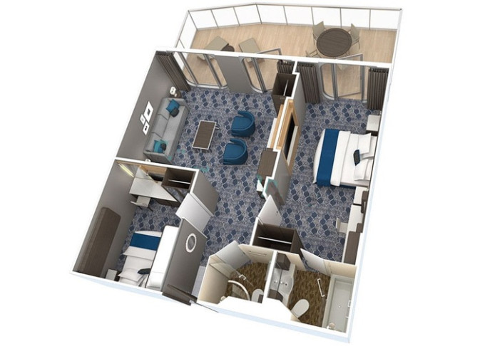 | OS - Owner’s Suite 51,5 m² + balkón 22 m². Max 4 osoby. Výhody Royal Suite Sky Class. | 9 936 € 3 312 € za osobu | ||