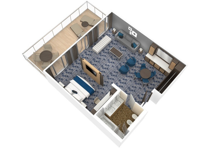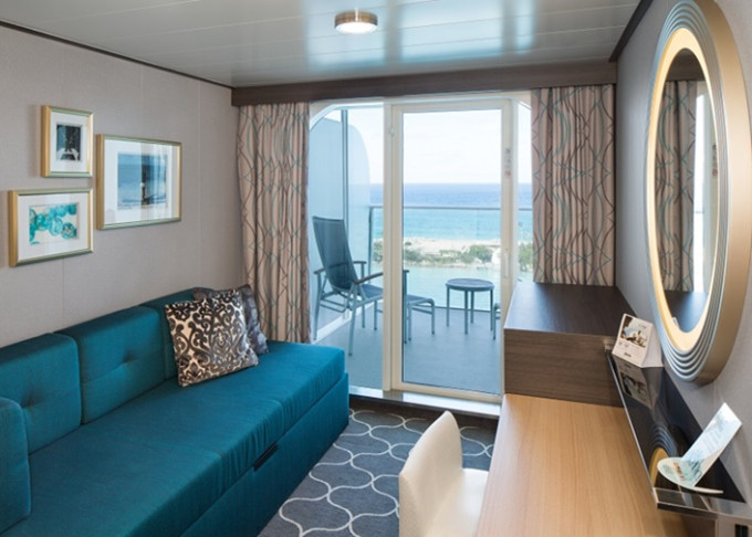 | J4 - Junior Suite s balkónom 26,5 m² + balkón 7,5 m². Max 5 osôb. Výhody Royal Suite Sea Class. | 5 210 € 5 210 € za osobu | ||
