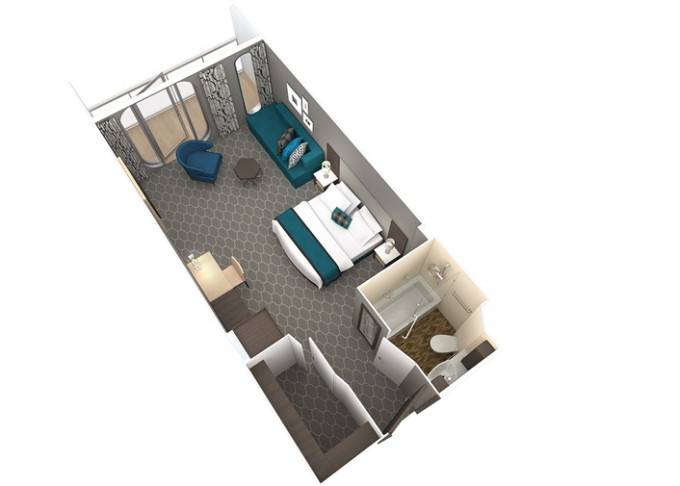 | 2S - Vnútorná kajuta Central Park View / s oknom 18 m². Neotvárateľné okno (výhľad na Central Park). Max 4 osoby. | 2 856 € 714 € za osobu | ||
