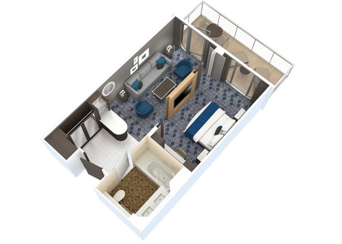| A3 - Spacious AquaTheater 52 m² + balkón 55 m². Max 4 osoby. Výhody Royal Suite Sky Class. | 10 440 € 3 480 € za osobu | ||