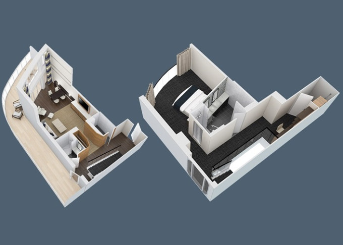 Najväčšie kajuty sú Ultimate Family Suites / 2-spálne Loft Suites) 152 m² s 57 m² balkónom.