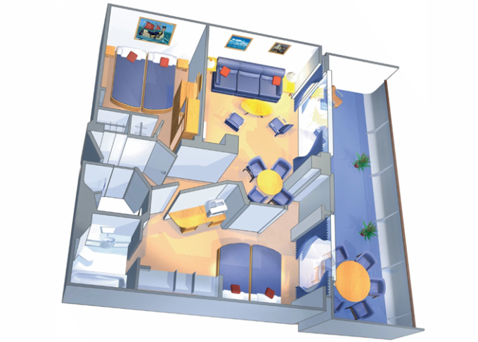 VP - Ocean View Panoramic Suite (bez balkónu) 38 m². Panoramatické neotvárateľné okná. 12. paluba. Max 6 osôb. Výhody Suite. 4 764 € 2 382 € za osobu