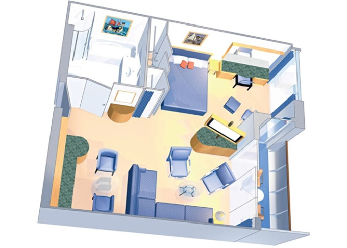 VP - Ocean View Panoramic Suite (bez balkónu) 38 m². Panoramatické neotvárateľné okná. 12. paluba. Max 6 osôb. Výhody Suite. 4 645 € 4 645 € za osobu