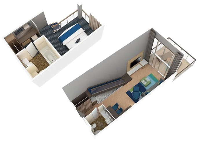 | L1 - Crown Loft Suite s balkónom 68 m² + balkón 13 m². 2-podlažný apartmán. 17. paluba. Max 4 osoby. Výhody Royal Suite Sky Class. | 4 104 € 2 052 € za osobu | ||