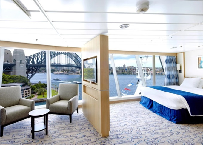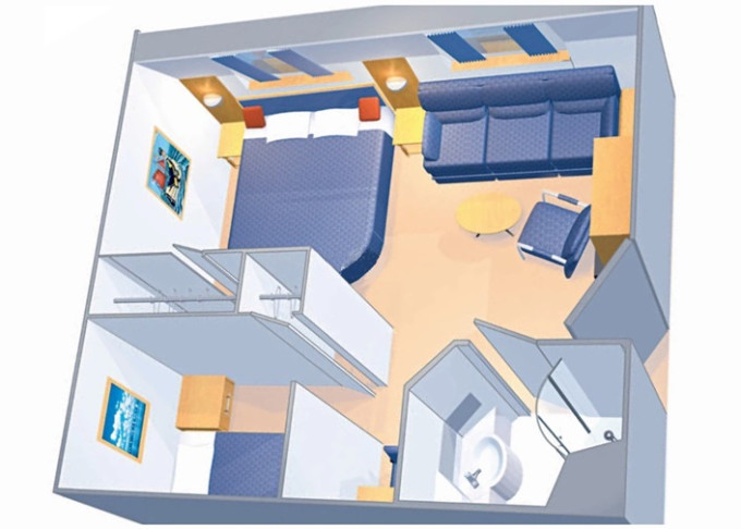 | VP - Ocean View Panoramic Suite (bez balkónu) 37 m². Panoramatické neotvárateľné okná. Oddelená časť s poschodovou posteľou. Max 6 osôb. Výhody Suite. | 4 080 € 1 020 € za osobu | ||