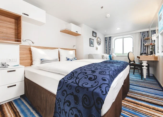 AUAO - Kajuta s oknom kat. A 17 m². Neotvárateľné okno. 3,8. paluba. Max 4 osoby. 1 834 € 1 834 € za osobu
